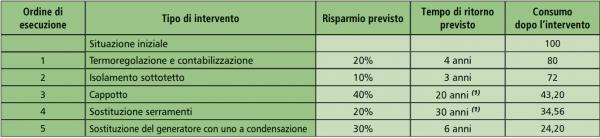 L’ordine di esecuzione degli interventi è quindi fondamentale ed il risparmio deve essere calcolato in sequenza per ogni intervento, rispetto al consumo dopo l’intervento precedente.